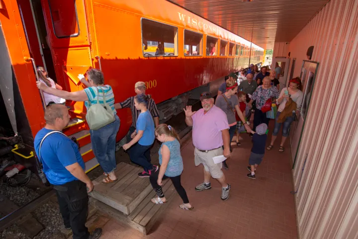 The pizza train is one of our most popular family oriented train rides each season. Choose from pepperoni, sausage or cheese pizza baked fresh in the dining car on the train.  The Pizza Train includes a personal size pizza and your first soda or bottled water. Additional beverages are available from the bar. The trip lasts about 2 hours during which you will see farm fields, deep woods, the scenic Namekagon River and a stop at the Bean Creek Trestle.
